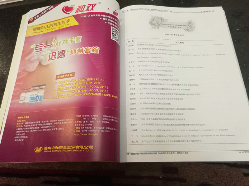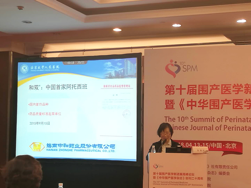 海南中和藥業(yè)股份有限公司攜重磅產(chǎn)品“和雙?醋酸阿托西班注射液”亮相本次會議,獲得全國圍產(chǎn)醫(yī)生的廣泛關注。并特邀北京大學第一醫(yī)院時春艷教授主持,由北京大學人民醫(yī)院張曉紅教授主講專題講座《早產(chǎn)的宮縮抑制劑臨床應用》。張教授先從早產(chǎn)的流行病學開始切入主題,WHO指南及中國的早產(chǎn)指南2014版列入的宮縮抑制劑主要有:①選擇性宮縮抑制劑:和雙?阿托西班;②β2腎上腺素受體興奮劑:利托君;③鈣通道阻滯劑:硝苯地平;④前列腺素合成酶抑制劑 :吲哚美辛;硫酸鎂只作為32周前的神經(jīng)保護劑使用。張教授認為在維持/重復應用宮縮抑制劑中,和雙?醋酸阿托西班注射液對改善結局有顯著性差異。利托君/硝苯地平與安慰劑組對比,無顯著性差異。和雙?醋酸阿托西班注射液安全性好,應為宮縮抑制劑的最佳選擇。